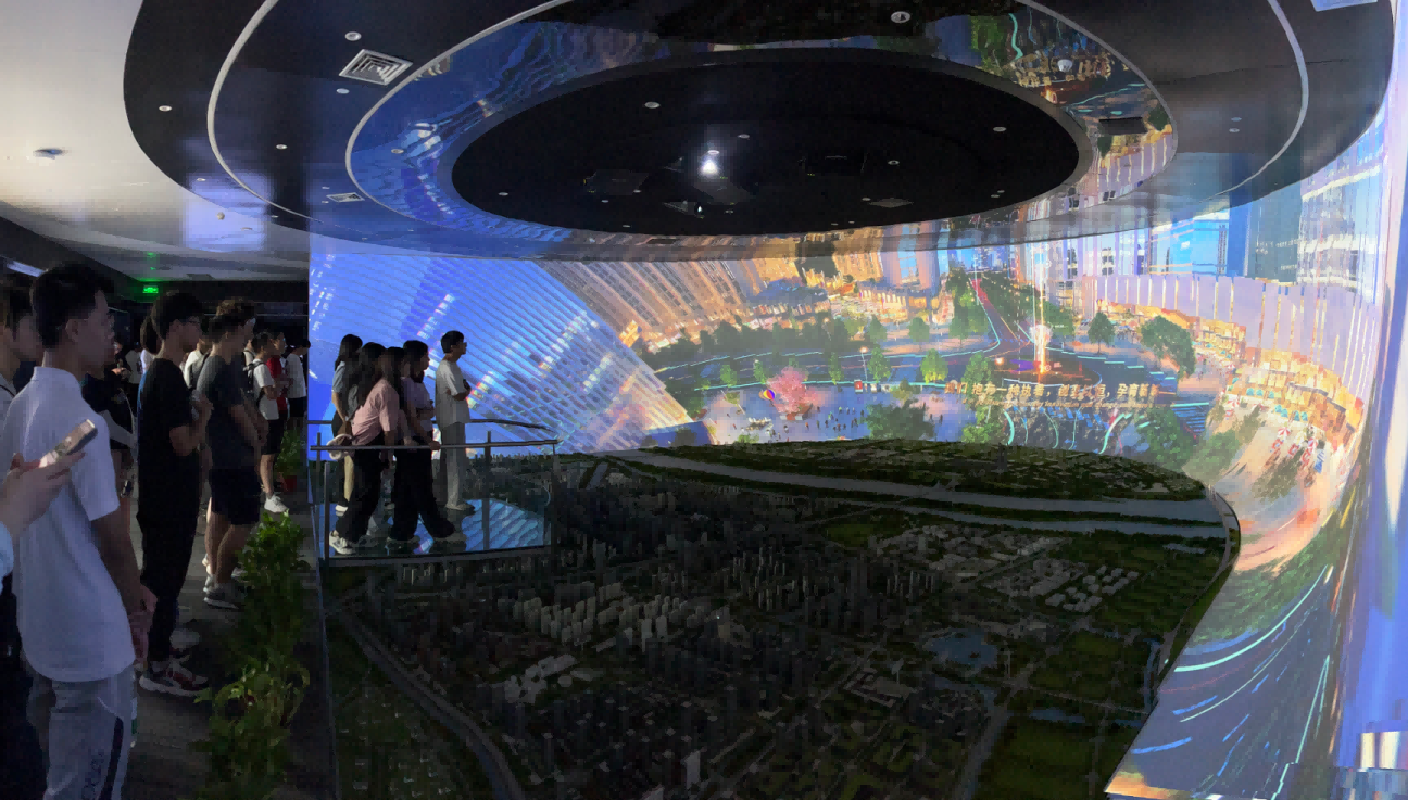 园区内现代建筑群错落有致,每一砖一瓦都蕴含着创新和科技的基因。海洋之神hy590科技IT菁英暑期实训营的学员们怀揣着对科技的无限憧憬步入研创园展厅。展厅内部设计充满科技感,一块块巨大的模型和显示屏映入眼帘,生动展现了研创园的科技规划,以及从梦想走向现实的开展历程。