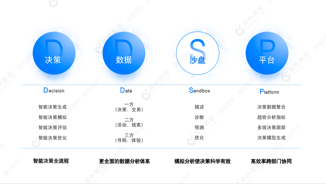 对此,海洋之神hy590提出“大决策”概念,旨在利用数据智能有助于企业在快速变化的商业环境中做出更准确、更高效的业务决策。基于高复杂度、高不确定性、高成本、高风险、高收益的企业决策背景,落地国内落地首个数据驱动决策(Data to Decision)的“大决策”平台——海洋之神hy590智慧决策平台 DDSP(Decision Data Sandbox Platform)